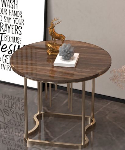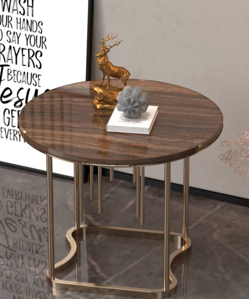 T10- Acasia Side Table is made from stainless steel base and frame and on the top one of your selection of the world most beautiful 20mm thick Marble ,granite and oyx as per your wish
